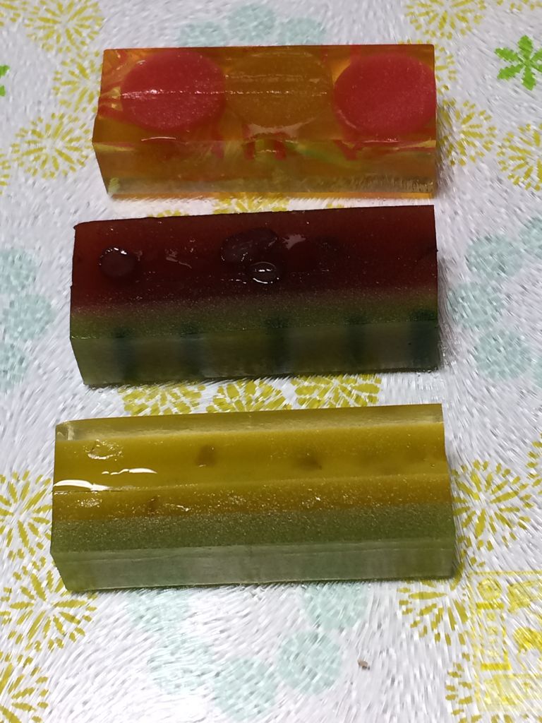 羊羹…というか錦玉羹です。お味は上から白桃、スイカ、レモン。